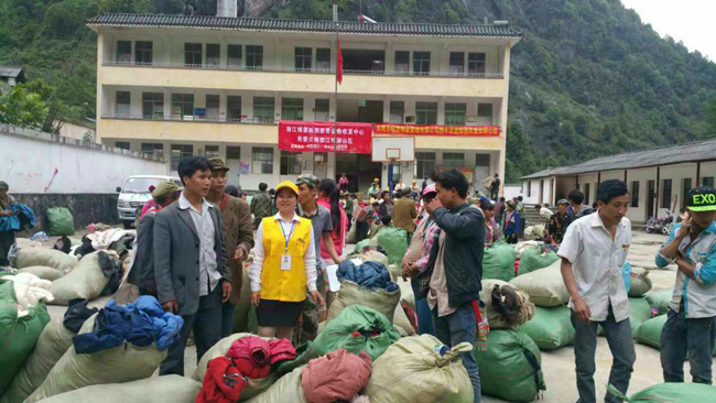 第三十四批爱心物资,于2016年5月29日送到云南省怒江州泸水县称干乡,衣服48000件,大米10袋,油10桶。接爱捐助副乡长电话:13988613683