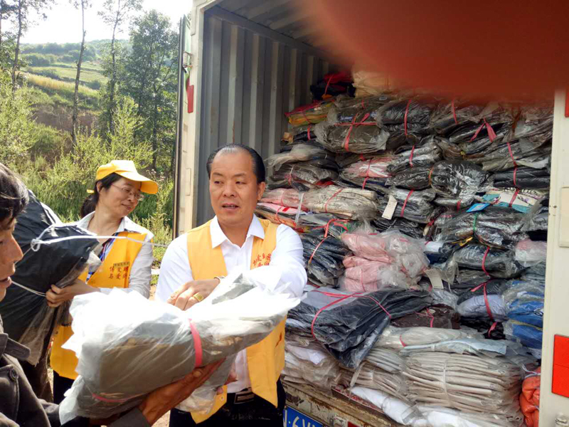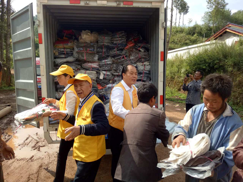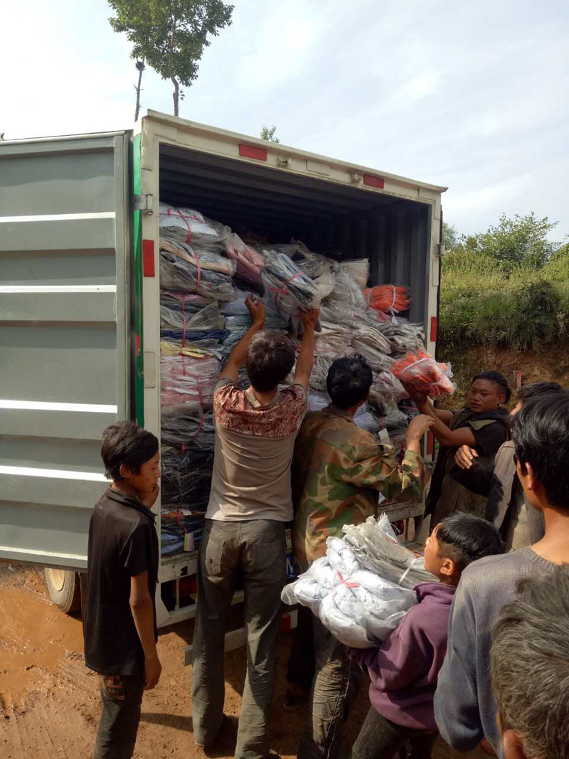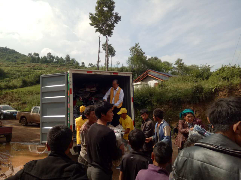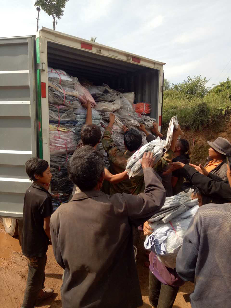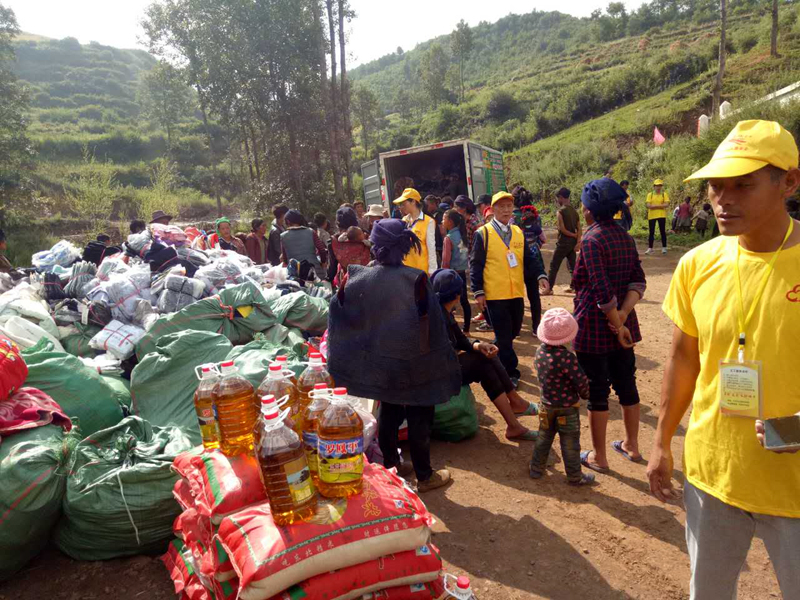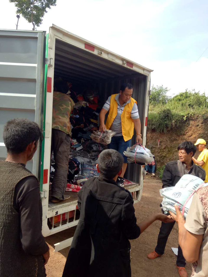 第四十三批爱心物资与2017年8月17日送到四川省凉山州昭觉县日哈乡吉尔村,衣物8万件,大米15袋(50斤装),花生油15桶(5升装)